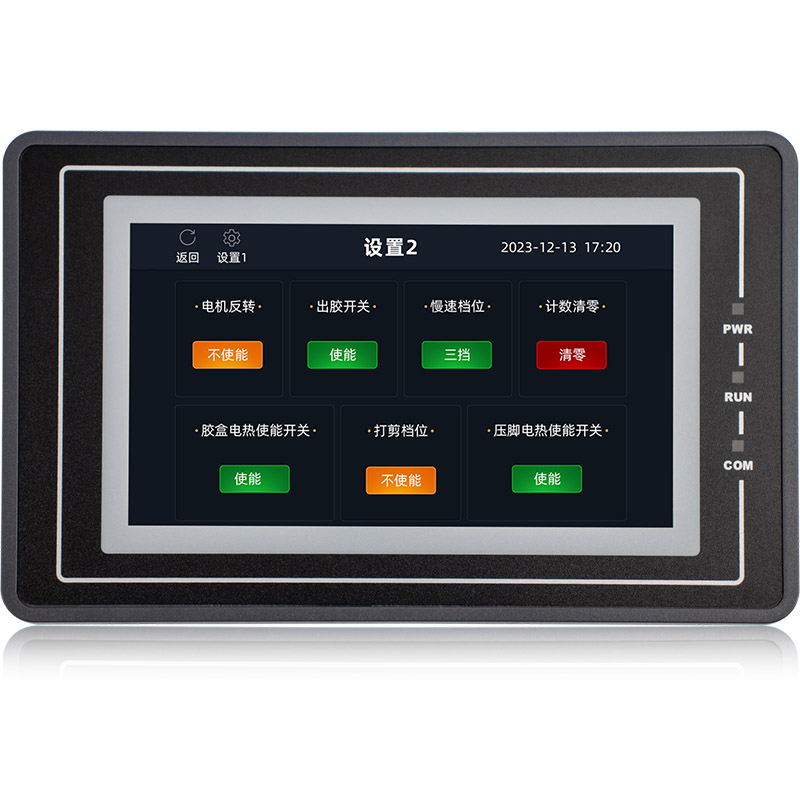 金璽HMI應用在超聲波控制上,安裝在控制機箱上對超聲波進行數據設定和監(jiān)控。